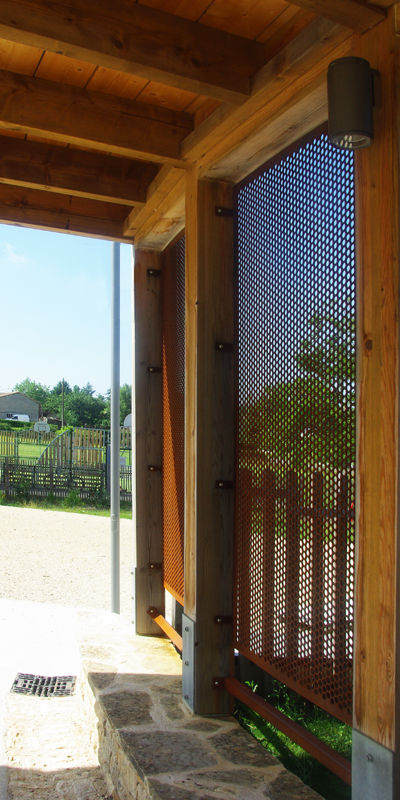 Auvent salle des fêtes de Chail, architectes Gérard Humeau © CAUE 79