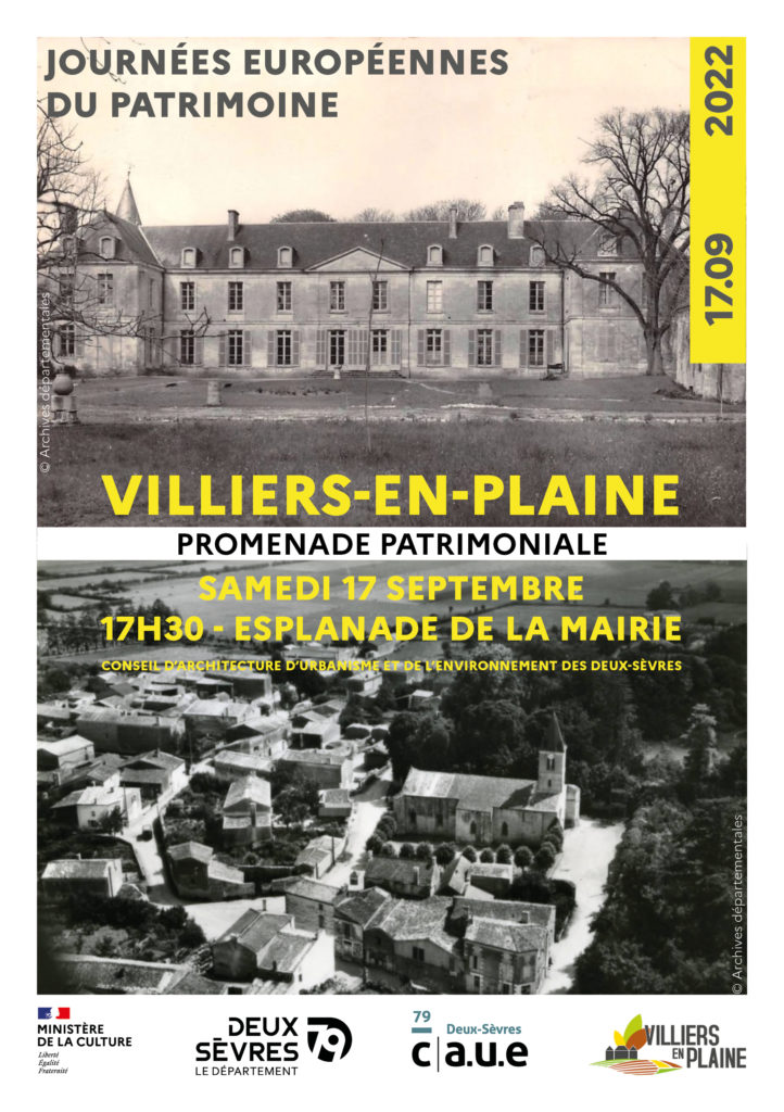 La commune de Villiers-en-Plaine et le CAUE proposent une promenade patrimoniale dans le bourg de Villiers le samedi 17 septembre 2022 à 17h30.