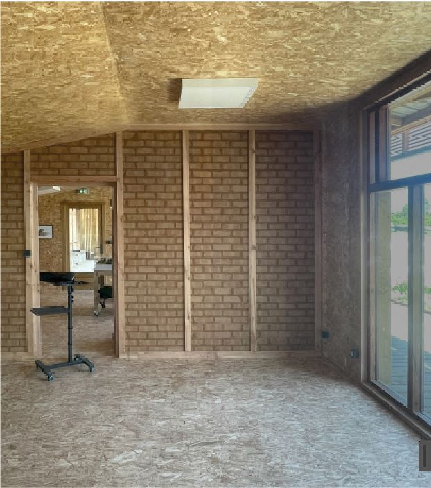 L’approvisionnement en matériaux locaux et biosourcés est limité à 50 km autour du chantier. Les entreprises à l’oeuvre sont formées sur le chantier à de nouvelles techniques comme l’isolation en paille hachée.